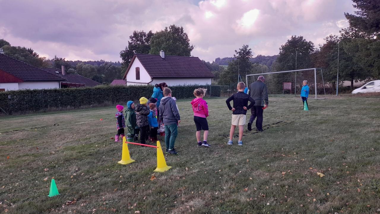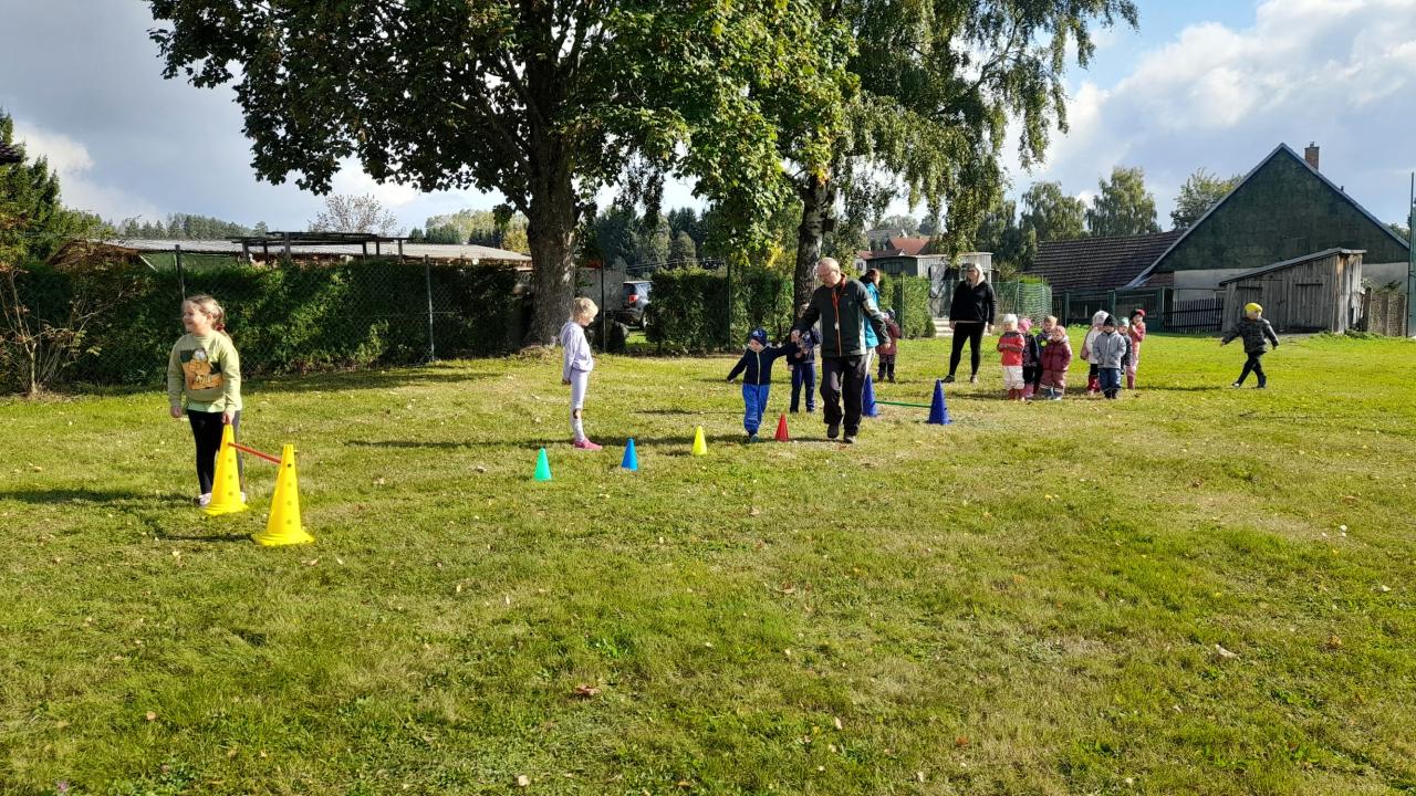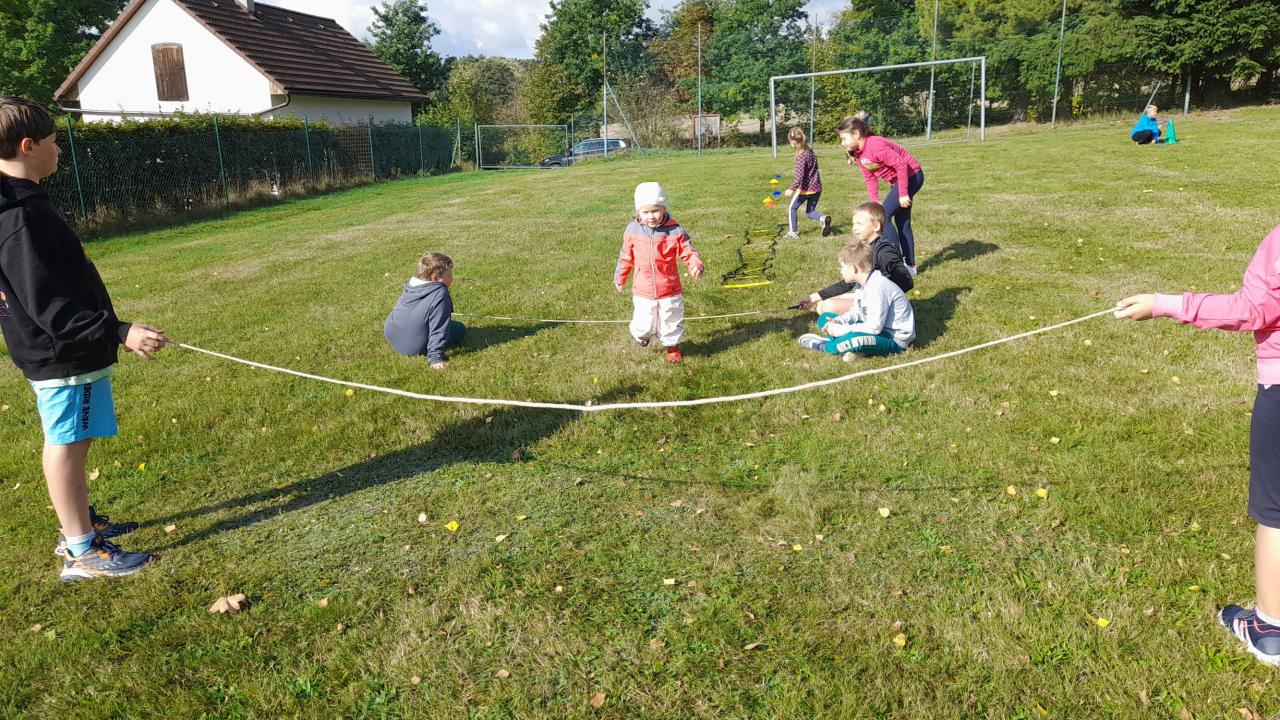 Ve čtvrtek 2.10.2025 jsme se s dětmi vydali na hodinu tělesné výchovy do naší ZŠ. Školáci s panem ředitelem si pro nás připravili venkovní překážkovou dráhu. Nejprve žáci ze školy ukázali malým dětem, co a jak mají dělat. Ukázka to byla velmi zábavná. Poté se malé děti vrhly do překonávání překážek. Hodně se bavily a vše vykonávaly s velkou radostí a nadšením. Vypadalo to, že nebudou chtít odejít. Díky školákům a panu řediteli jsme splnili hodně aktivit, které vykonáváme v rámci programu „Se Sokolem do života.“